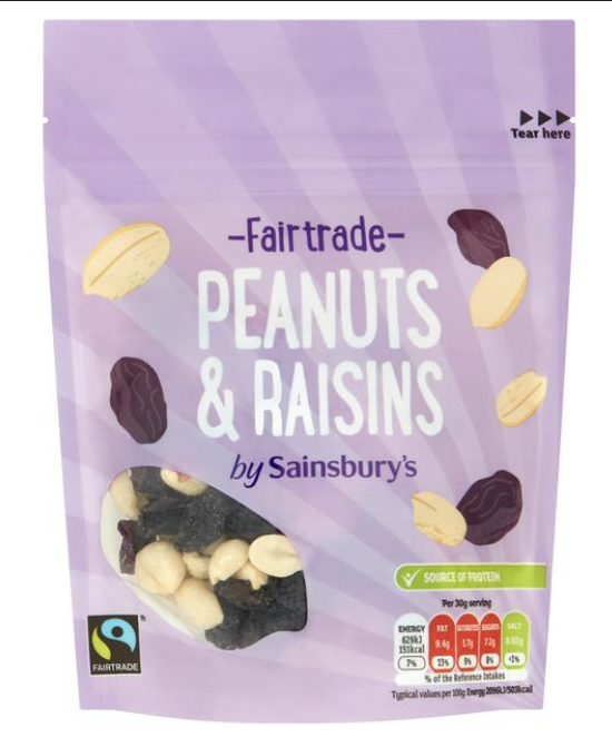 Please also try these Sainsbury peanuts and raisins. And go to a Sainsbury! (They’re on every corner.) I lived off these and love them. They were a treat during Covid. They’re blanched peanuts and raisins.