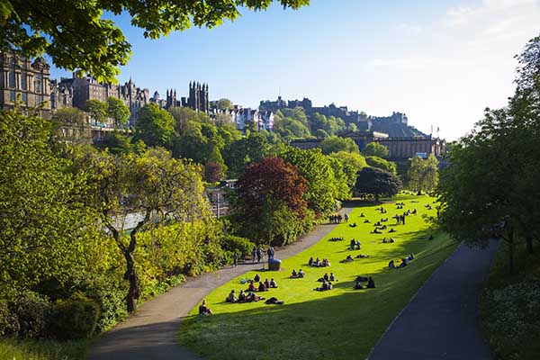 Continuing on the above, you’ll see the Princes Street Garden come up in lists. It’s by the castle and the National Gallery (the art museum I went to). Here’s what it looks like, if you decide you want to have a picnic there: